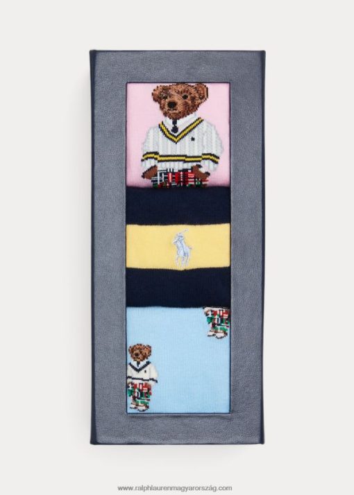 Ralph lauren krikettpulóvere ihlette a pamutkeverék zoknit ebben az ajándékkészletben. szeretett kabalánk az ikonikus darabot két páron lévő madras nadrággal párosítja, míg a harmadik páron a pulóver díszítőelemei által ihletett csíkok láthatók.