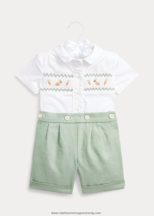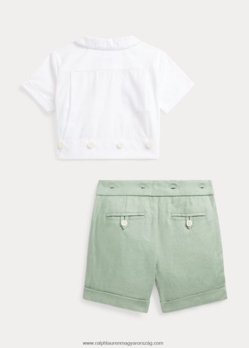 pólós pamut ing és vászon rövid szett 2680487808 baba Ralph Lauren világos zöld/fehér