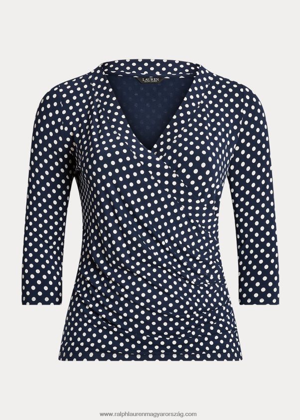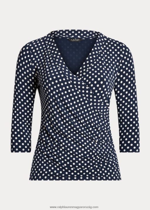 pöttyös surplice jersey felső 2680484594 nők Ralph Lauren sötétkék/krém