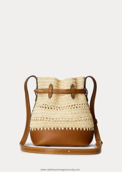 raffia-bőr kis bellport vödörtáska 2680485199 nők Ralph Lauren természetes/cuoio