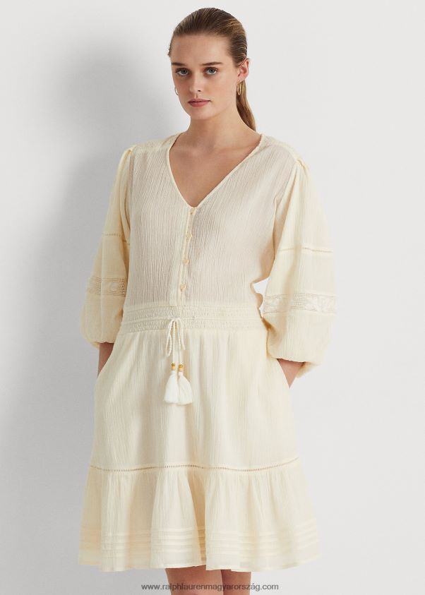 ráncos pamutblúzos ujjú ruha 2680484099 nők Ralph Lauren mascarpone krém