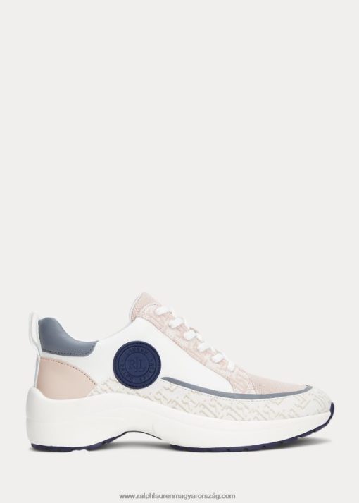 reaghan logós jacquard és bőr tornacipő 2680485086 nők Ralph Lauren fehér / világos rózsaszín / sötétkék