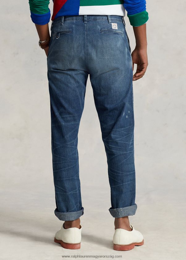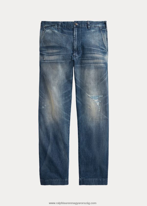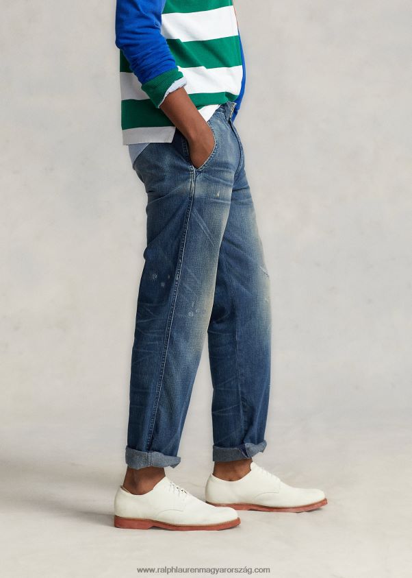 Ezek a farmerek indigófestett pamutfarmerből készültek Japánból, és kézzel csiszolták, hogy autentikus megjelenést kapjanak. A ralph lauren jobb gyapottal együttműködve javítja a gyapottermesztést világszerte. a jobb gyapot arra tanítja a gazdálkodókat, hogy hatékonyan használják fel a vizet, gondoskodjanak a talaj és a természetes élőhelyek egészségéről, csökkentsék a legkárosabb vegyszerek használatát, és hajtsák végre a tisztességes munka elveit.