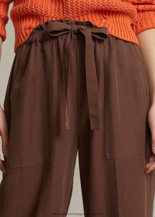 selyemkeverék széles szárú nadrág 2680483171 nők Ralph Lauren csokoládébarna