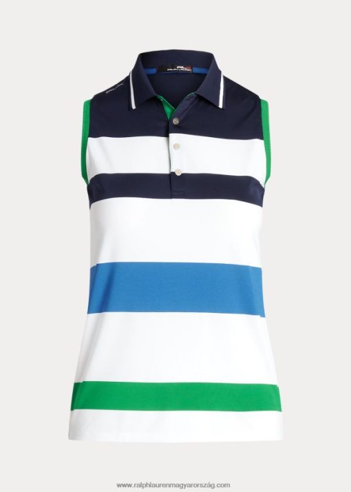Ez az ujjatlan, sztreccs trikó póló egy tarka csíkos motívummal, csíkos végű gallérral és a mi jellegzetes „rlx” guminyomásos logóinkkal.