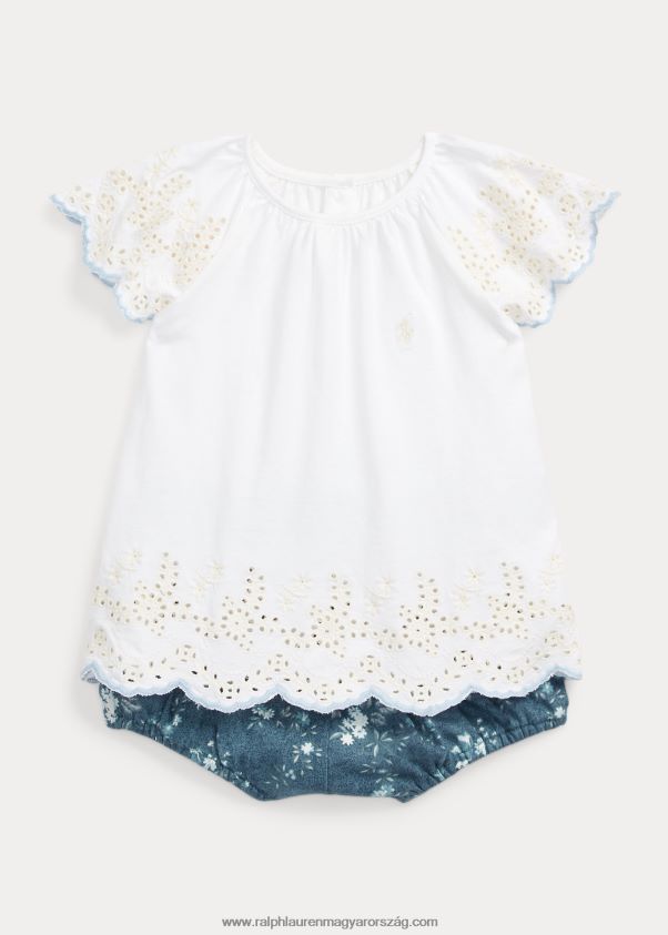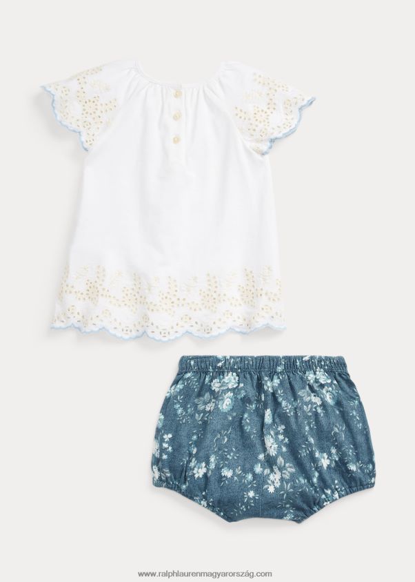 fűzőlyukú pamut felső és gingham rövid szett 2680487776 baba Ralph Lauren fedélzetmosó fehér