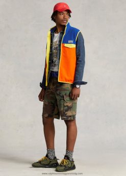 színblokkos szálcsiszolt gyapjú mellény 2680481265 férfiak Ralph Lauren vitorlás narancssárga multi