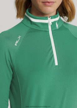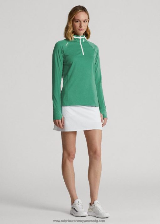 sztreccs dzsörzé negyedcipzáras pulóver 2680489409 nők Ralph Lauren tutaj zöld/kerámia fehér