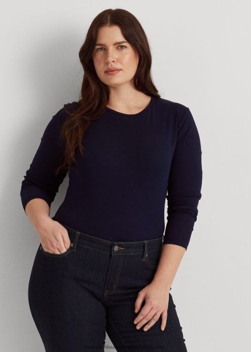 sztreccs hosszú ujjú póló 2680484732 nők Ralph Lauren haditengerészet