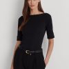 sztreccs pamut csónaknyakú póló 2680483939 nők Ralph Lauren halvány rózsa