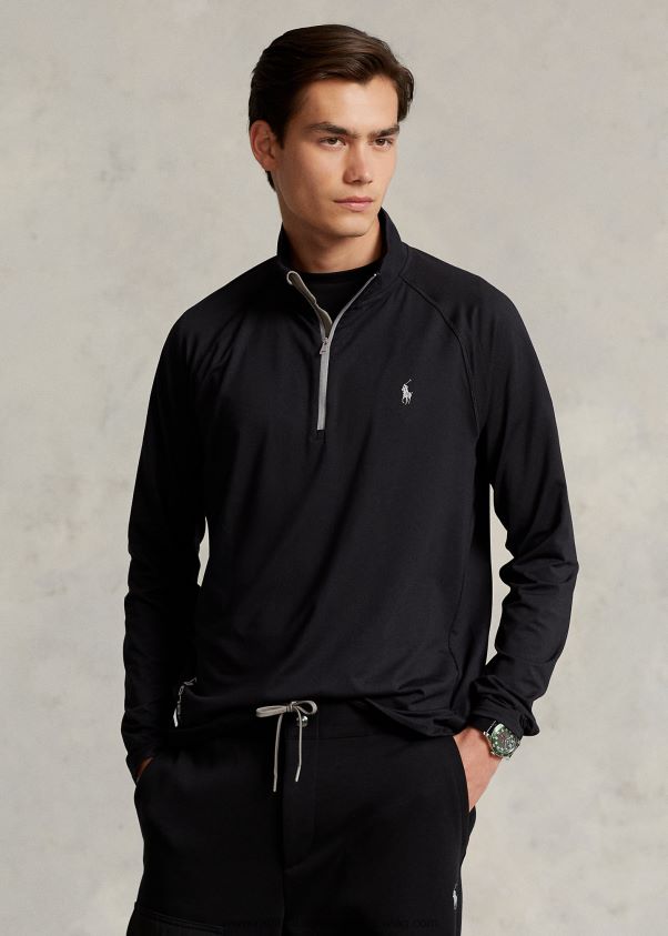 teljesítmény jersey negyed cipzáras pulóver 2680481026 férfiak Ralph Lauren fekete