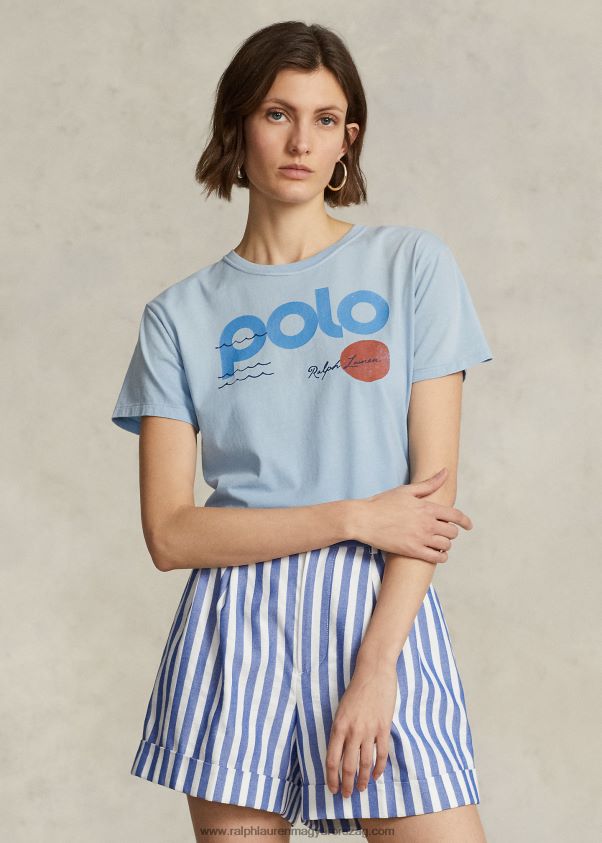 tengeri logóval grafikus pamut jersey póló 2680483030 nők Ralph Lauren kobalt kék