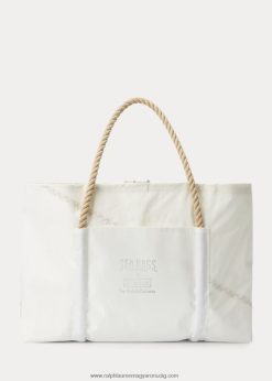 A maine állambeli portland működő vízpartján, kézzel készített masszív hordtáska használt vitorlákkal készült, amelyek a tengeri életet tükrözik, így minden táska egyedi. kézzel illesztett kötélfogantyúkkal és ralph lauren ikonikus logóival van befejezve, amelyeket tengeri ihletésű varrások körvonalaznak.