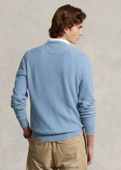texturált pamut nyakú pulóver 268048645 férfiak Ralph Lauren új púderkék hanga