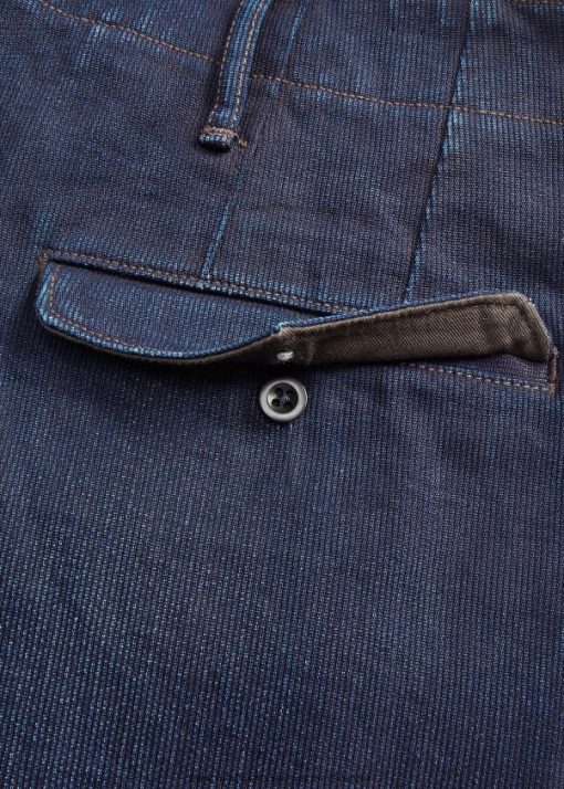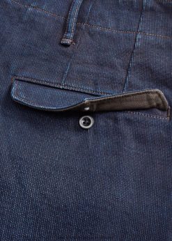 Ismeretes nadrág egyenes szárral. 6,3 oz-ból készült. bedford zsinórszövet. valódi indigóval festett és Japánban szőtt fonal. vintage felesleg ihletésű konstrukció gombléccel és gombos hátsó zsebekkel. corozo gombok. a zsugorodás minimalizálása érdekében sanforizált.