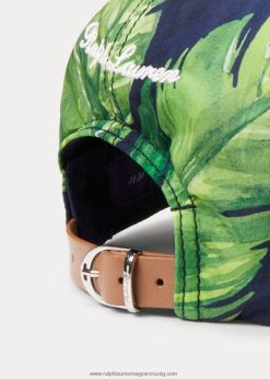 ez az olasz gyártmányú gömbsapka élénk trópusi mintával, finom logórészletekkel és báránybőr hátpánttal van kiegészítve.