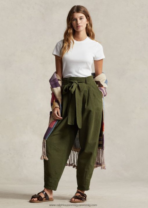 túlméretes pamut seersucker nadrág 2680489192 nők Ralph Lauren olajbogyó