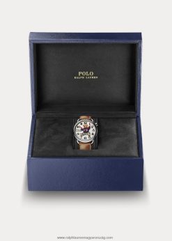 ülő pólómaci 42 mm-es acél karóra 2680482799 férfiak Ralph Lauren fehér számlap