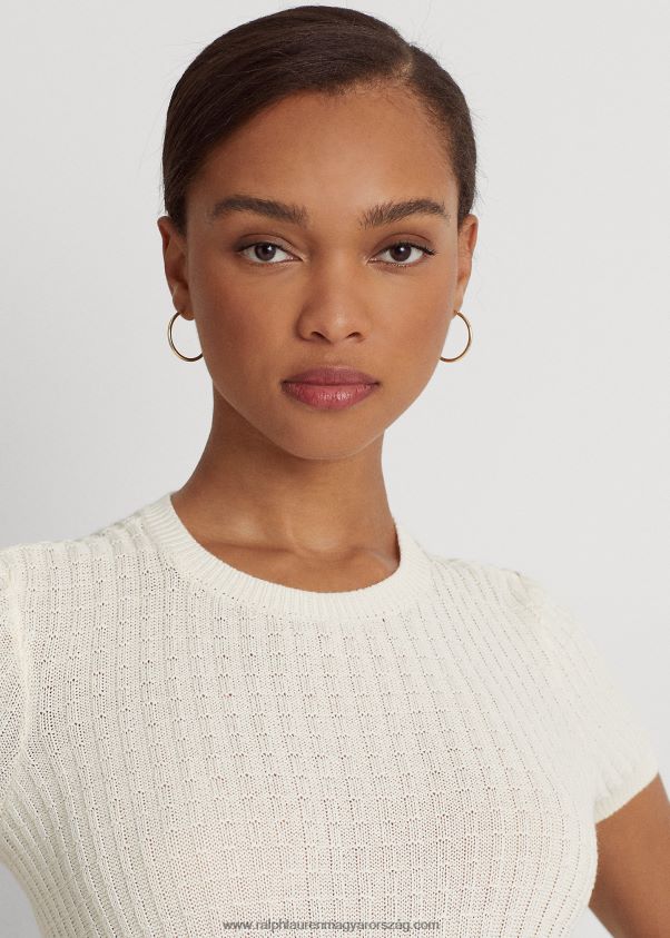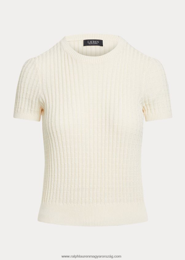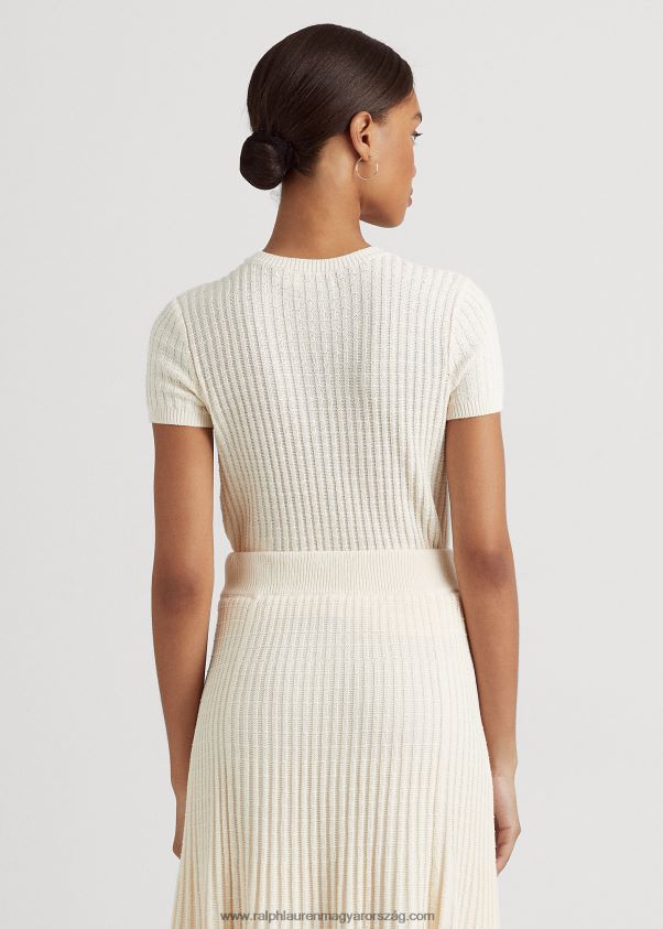 vászon-pamut rövid ujjú pulóver 2680483948 nők Ralph Lauren mascarpone krém