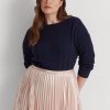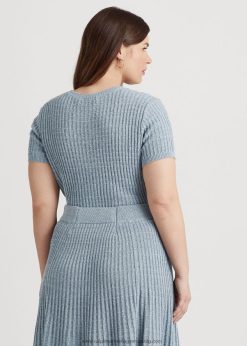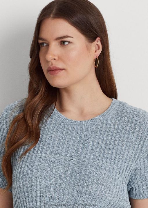 vászon-pamut rövid ujjú pulóver 2680484591 nők Ralph Lauren indigó óceán multi