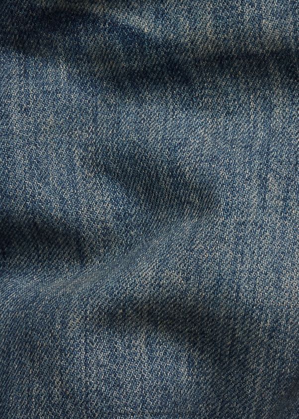 Vékony szabású farmer 13,75 oz-ból. jobb oldali twill. poros sötét indigó lemosó zöld öntéssel és kézfájdító. cipzáras konstrukció, amelyet a ’60-as évek végének farmerstílusai ihlettek. a zsugorodás minimalizálása érdekében sanforizált.