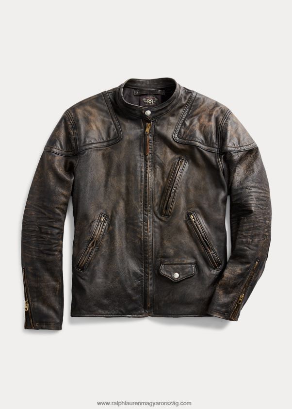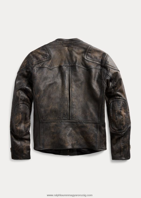 Mr. 1940-es évek végének motoros dzsekije ihlette. Lauren személyes gyűjteménye. növényi cserzett marhabőrből készült, fekete-barna árnyalattal. többlépcsős eljárással elért szorongatott felület, amely lehetővé teszi, hogy a darab a kopással együtt tovább öregedjen. párnázott váll- és könyökfoltok. cafe racer stílusú állógallér. teljesen sávval bélelt.