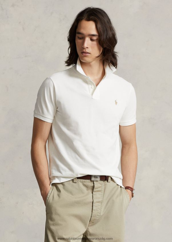 vékony szabású hálós alkalmi/munka póló 2680482 férfiak Ralph Lauren fedélzetmosó fehér