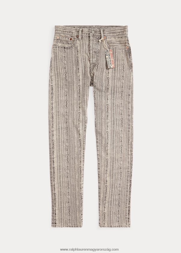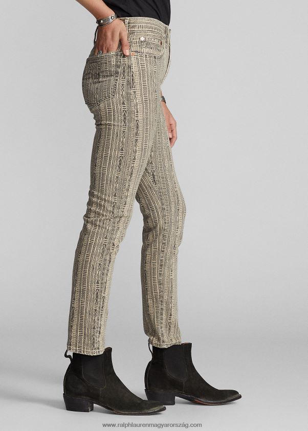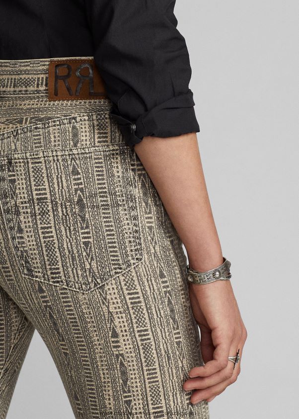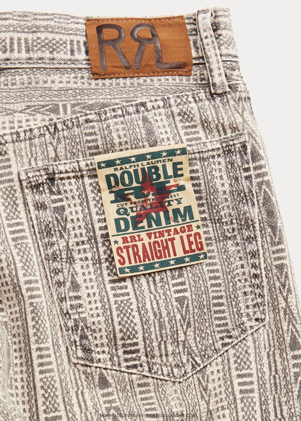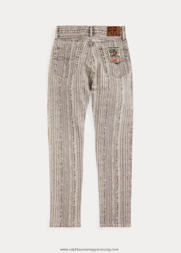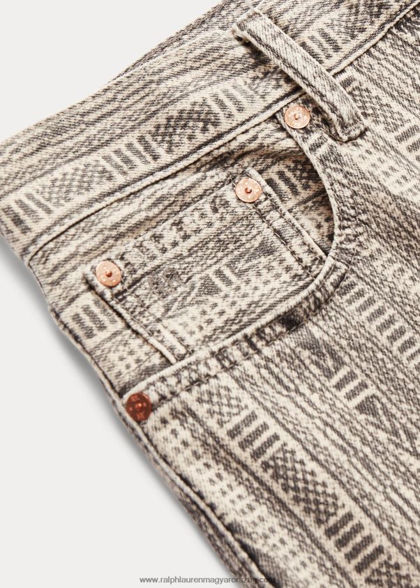 Egyenes szabású farmer kimagozott természetes pamut sztreccs farmerből. délnyugati szőtt minták ihlette motívummal nyomtatva. gombos légy. ”rrl” hímzés az érmezsebnél.