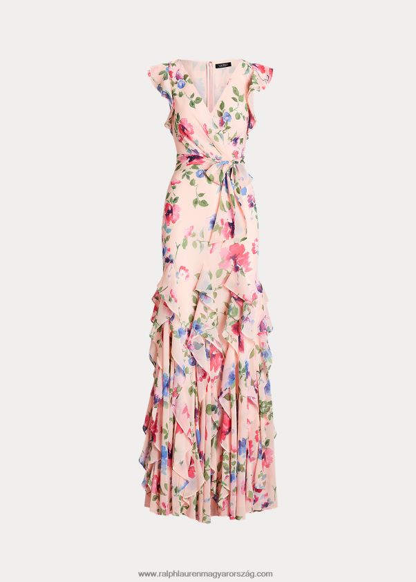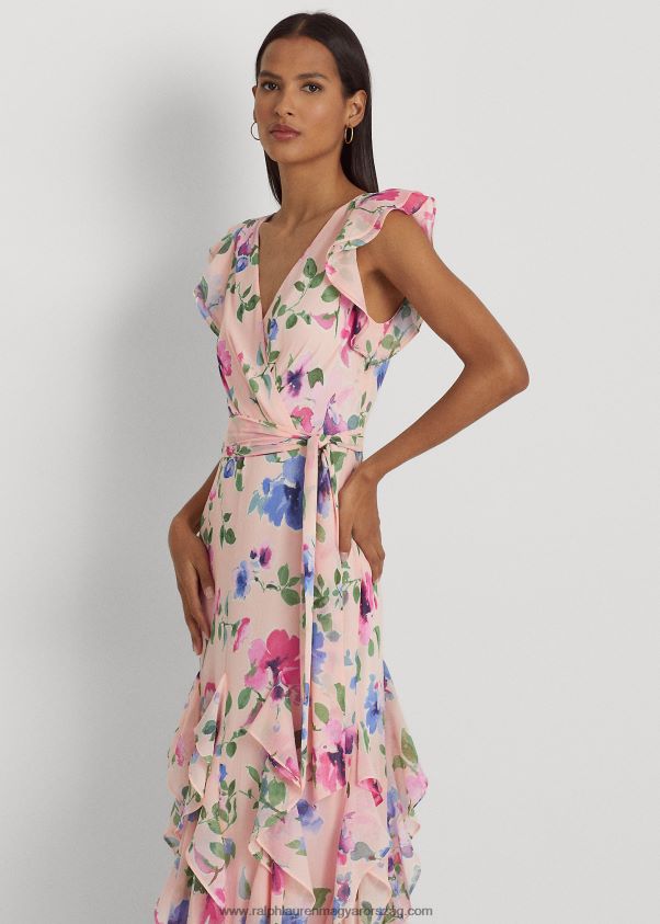 virágos, fodros szegélyű georgette ruha 2680484062 nők Ralph Lauren rózsaszín multi