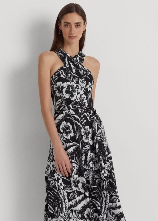virágos georgette kötőfék ruha 2680484355 nők Ralph Lauren fekete-fehér