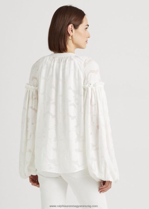 A kifinomult ingek romantikus megjelenése, ezt a stílust a félig áttetsző virágos jacquard szövet és a hullámzó blúz ujjak határozzák meg. lazán illeszkedő sziluettre vágott, „lauren ralph lauren” gravírozású gombokkal van díszítve a jellegzetes stílus érdekében.