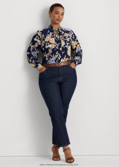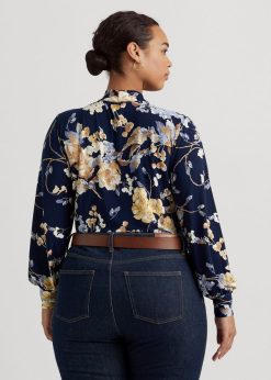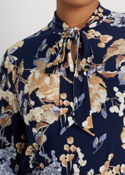 virágos nyakkendős nyakú sztreccs trikó felső 2680484695 nők Ralph Lauren haditengerészet multi