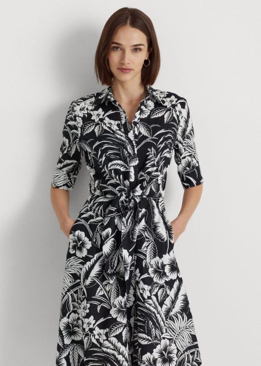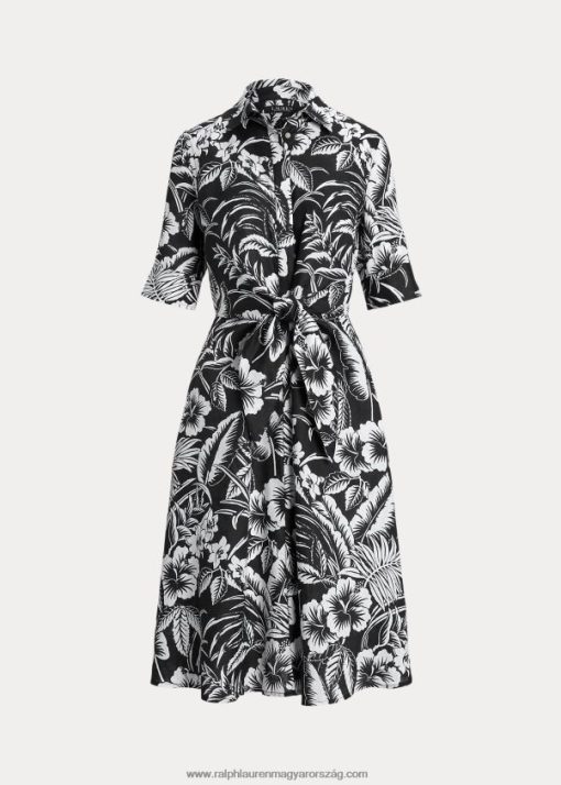 virágos nyakkendős vászon ingruha 2680484341 nők Ralph Lauren fekete-fehér