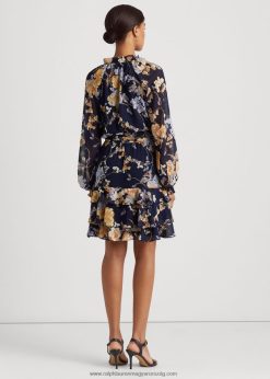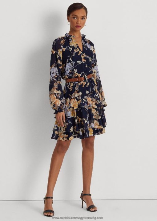 virágos öves ráncos georgette ruha 2680484094 nők Ralph Lauren haditengerészet multi