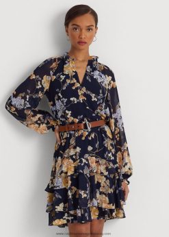 virágos öves ráncos georgette ruha 2680484450 nők Ralph Lauren haditengerészet multi