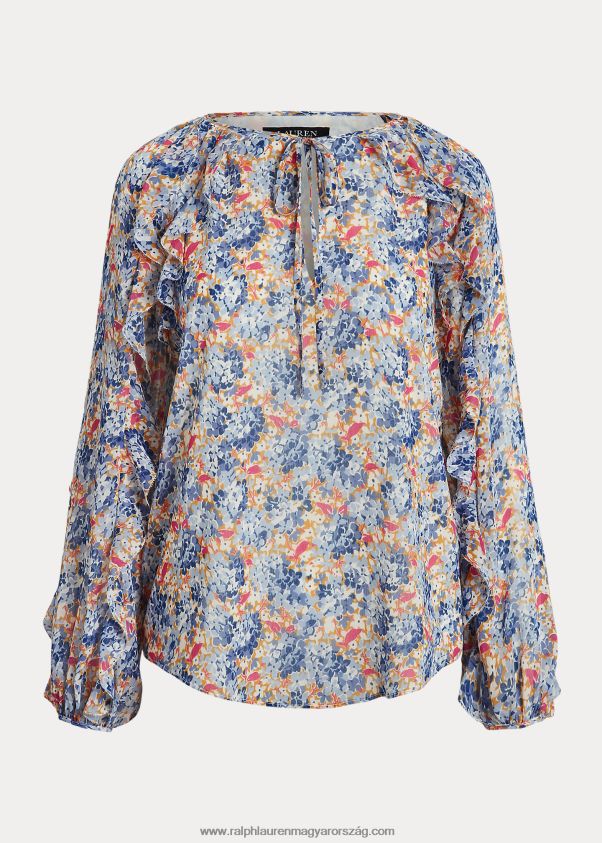 virágos ráncos georgette nyakkendős blúz 2680483984 nők Ralph Lauren kék/rózsaszín multi