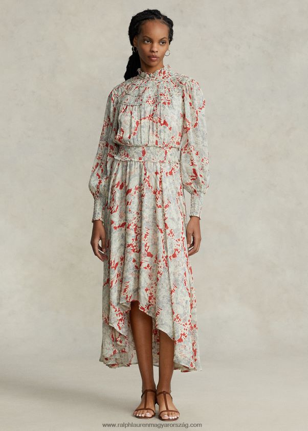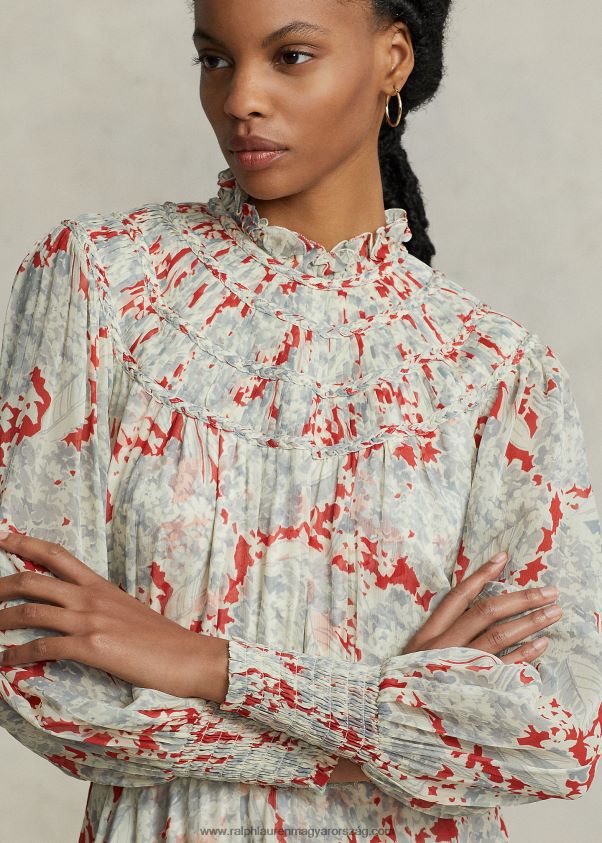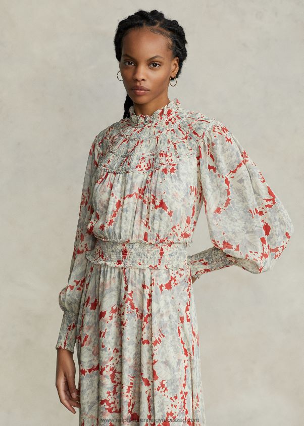 virágos ráncos georgette ruha 2680483222 nők Ralph Lauren bazsalikom virágos