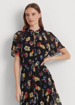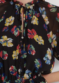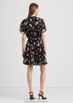 virágos ráncos georgette ruha 2680483892 nők Ralph Lauren fekete multi