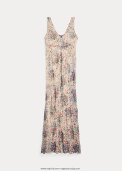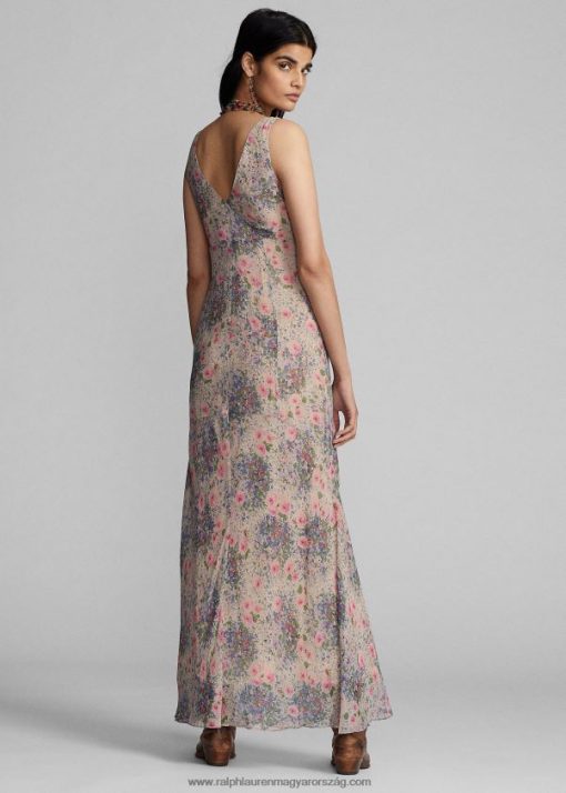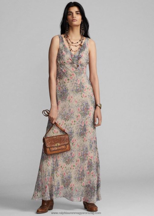 virágos ráncos selyem sifon ruha 2680483651 nők Ralph Lauren multi/tan