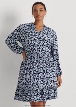 A szezon elegáns virágmotívumát bemutató ruhát a blúz ujjak, a fodros szegélyek és a többszintes szoknya határozzák meg. könnyű sztreccs dzsörzéből készült a puha kézért.