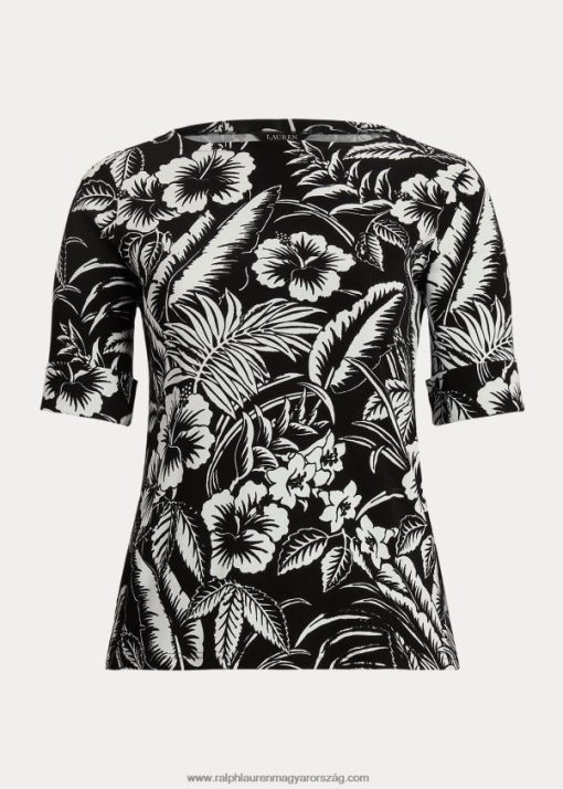 virágos sztreccs pamut póló 2680484526 nők Ralph Lauren fekete-fehér