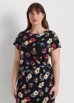 virágos sztreccs trikó rövid ujjú ruha 2680489483 nők Ralph Lauren fekete multi