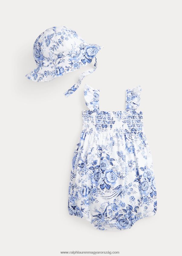 Ez a vászon-pamut készlet tartalmaz egy buborékos rövidnadrágot és sapkát, amelyeket a puhaság érdekében kimostak, és szeszélyes virágmotívumokkal nyomtattak. A ralph lauren jobb gyapottal együttműködve javítja a gyapottermesztést világszerte. a jobb gyapot arra tanítja a gazdálkodókat, hogy hatékonyan használják fel a vizet, gondoskodjanak a talaj és a természetes élőhelyek egészségéről, csökkentsék a legkárosabb vegyszerek használatát, és hajtsák végre a tisztességes munka elveit.