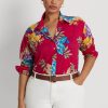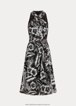 virágos vászon rövid ujjú ing 2680484528 nők Ralph Lauren fekete-fehér