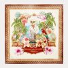 Ez a puha gyapjúkeverékkel készült négyzet alakú sál egy színes absztrakt jelenetet ábrázol, amely egy kikötőt és egy tengerparti várost ábrázol.