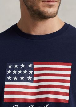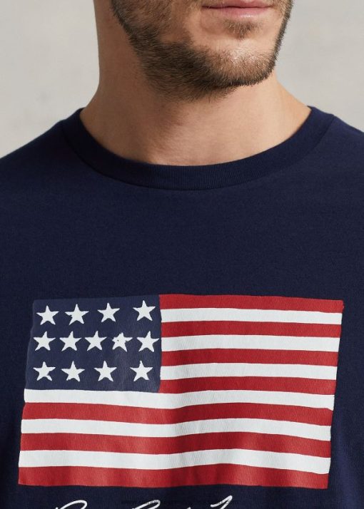 Ezen a pamut, nagy és magas pólón történelmi amerikai zászló grafikája és a ”polo ralph lauren” logónk az elején nyomott.