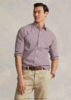 karcsú szabású kockás poplin ing 268048744 férfiak Ralph Lauren bor/fehér