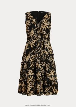 nyomtatott ráncos Georgette ruha 2680484961 nők Ralph Lauren fekete/barna