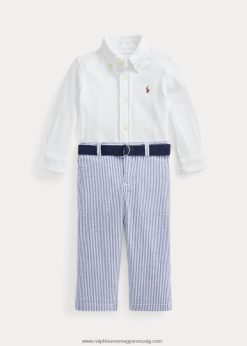 indigó pamut madras shortall & sapka szett 2680487827 baba Ralph Lauren rózsaszín/krémes multi