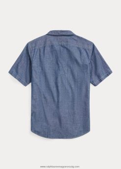 karcsú szabású gingham stretch poplin ing 268048813 férfiak Ralph Lauren sötétkék/fehér